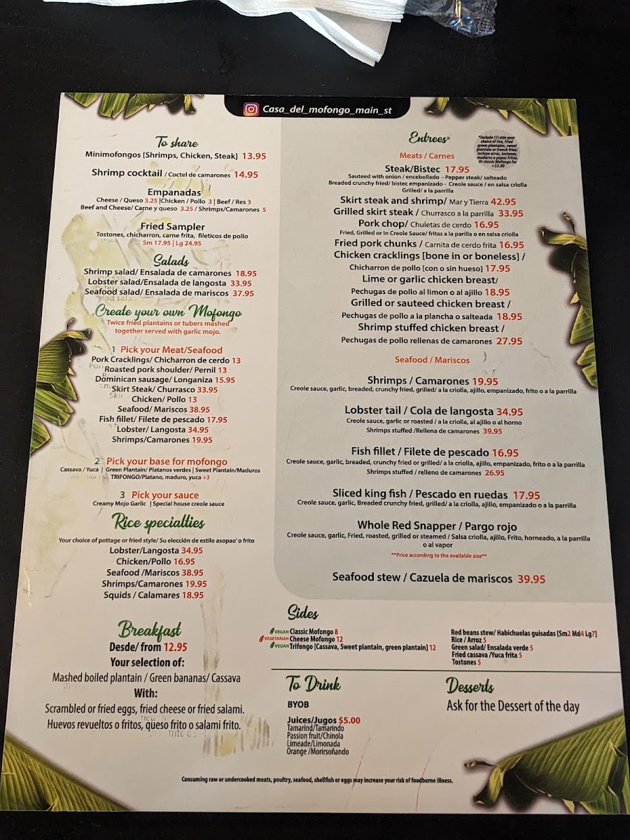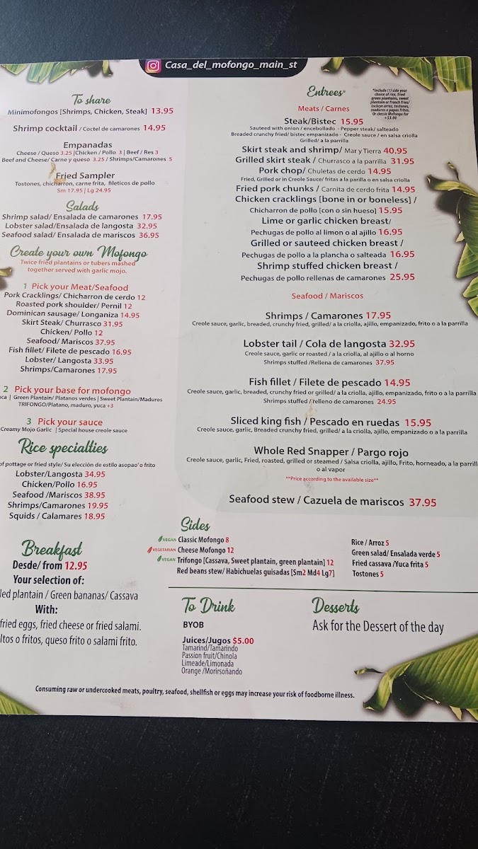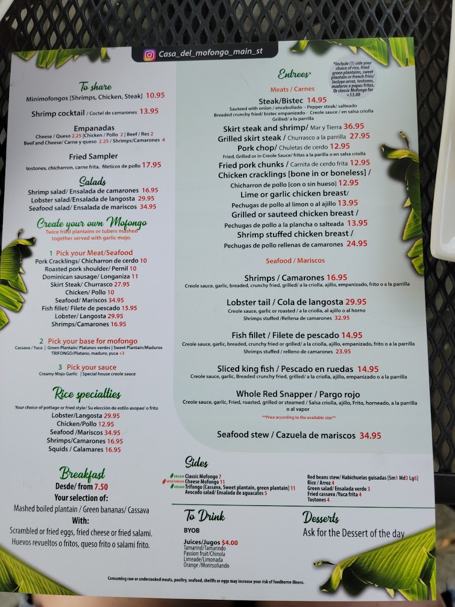 Welcome to Casa Del Mofongo, a delightful culinary gem located at 553 Main St, Bethlehem, PA. This restaurant specializes in authentic Spanish cuisine, embracing the vibrant flavors of the Caribbean. The centerpiece of their menu is, of course, Mofongo — a traditional Puerto Rican dish made from mashed plantains. You can indulge in classic options like the Classic Mofongo and Cheese Mofongo, or try the unique Trifongo featuring cassava and sweet plantains.